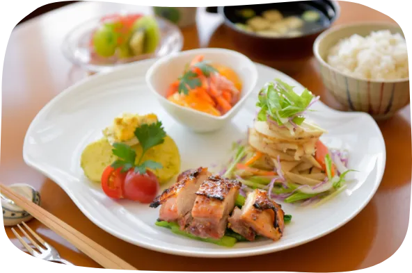 レストランへランチに行った気分になれるようなメニューを、カロリーや塩分、脂質控え目にアレンジ。